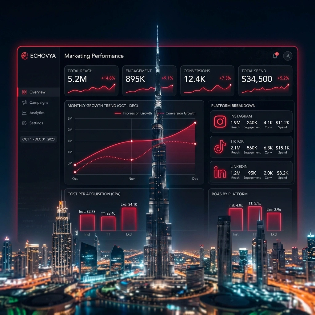 Dubai has one of the highest social media usage rates in the world. Instagram is massive here. TikTok is growing fast. LinkedIn matters for B2B. And people here actively follow and buy from brands on social.